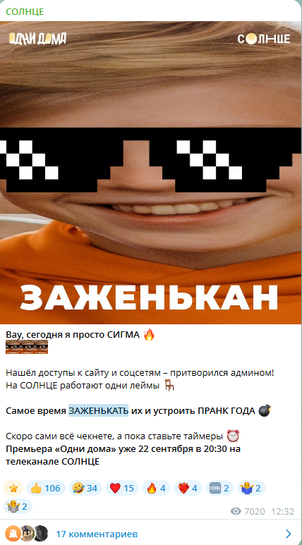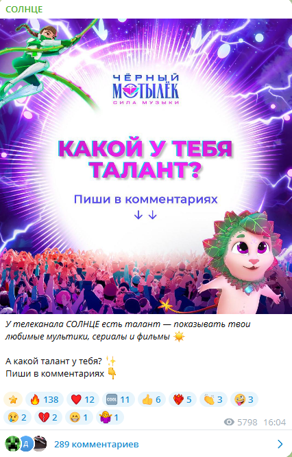 В 2025 году Telegram-канал семейного телеканала «Солнце» вырос почти в 10 раз за несколько недель. Запуск новой игровой активации привел не только к резкому притоку подписчиков, но и к десяткам тысяч комментариев, хаосу и отсутствию работающих правил взаимодействия с аудиторией. Команда телеканала рассказала Sostav, как в этих условиях удалось выстроить управляемое и безопасное комьюнити, усилить экспертизу в модерации большого сообщества и использовать живой диалог с аудиторией как источник идей, пользовательского контента и маркетинговый инструмент поддержки премьерных проектов.