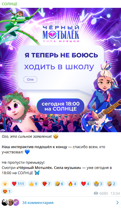 Когда активность стабилизировалась, мы сделали следующий шаг: начали встраивать сообщество в маркетинг премьер. Telegram стал площадкой теста гипотез, источником UGC и живой фокус-группой. Каждая активация не просто поддерживает интерес, но и дает аудитории ощущение участия.