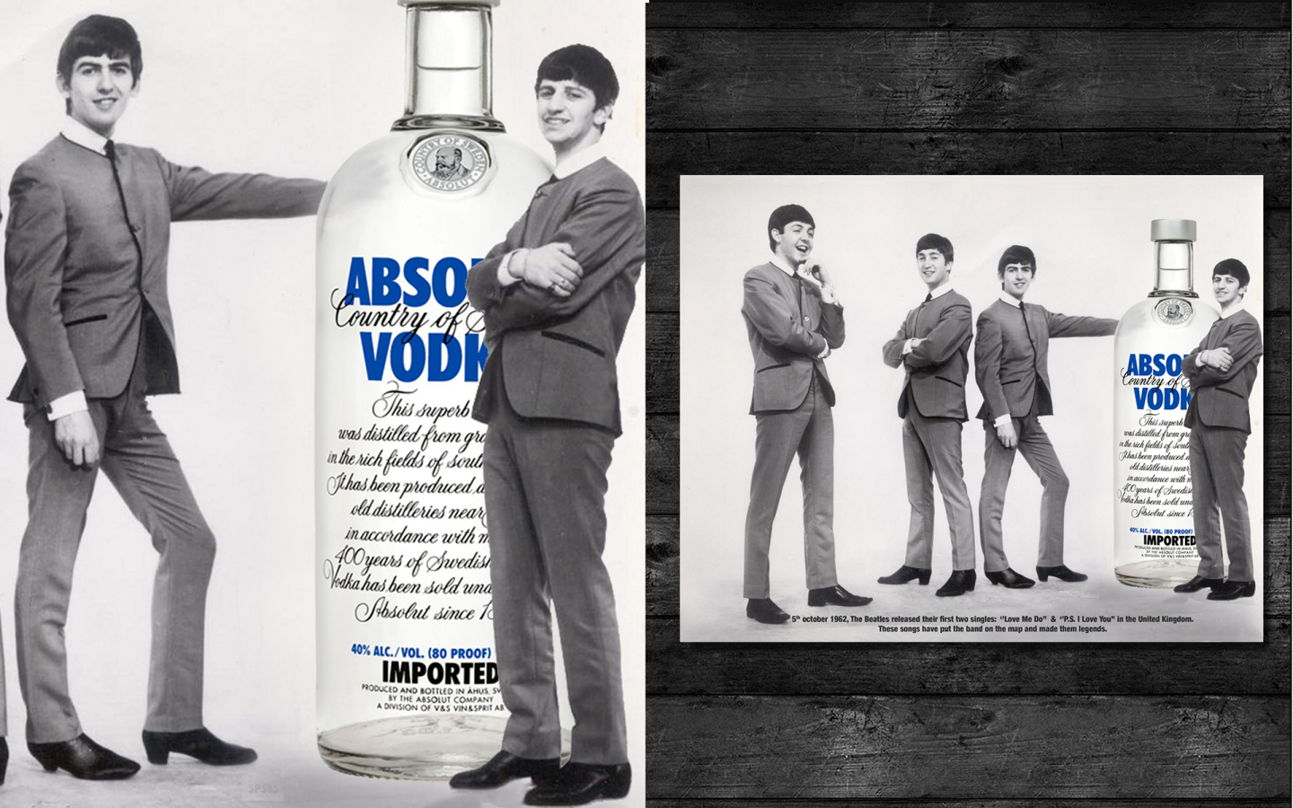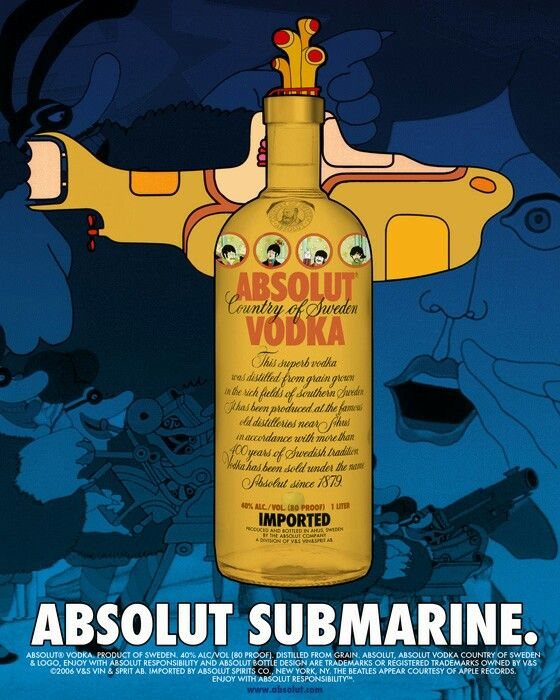 Образы музыкантов очень часто соотносят с брендом водки Absolut. Помимо реальной рекламы, креаторы создали много альтернативных вариантов интеграции битлов в коммерческие проекты бренда.