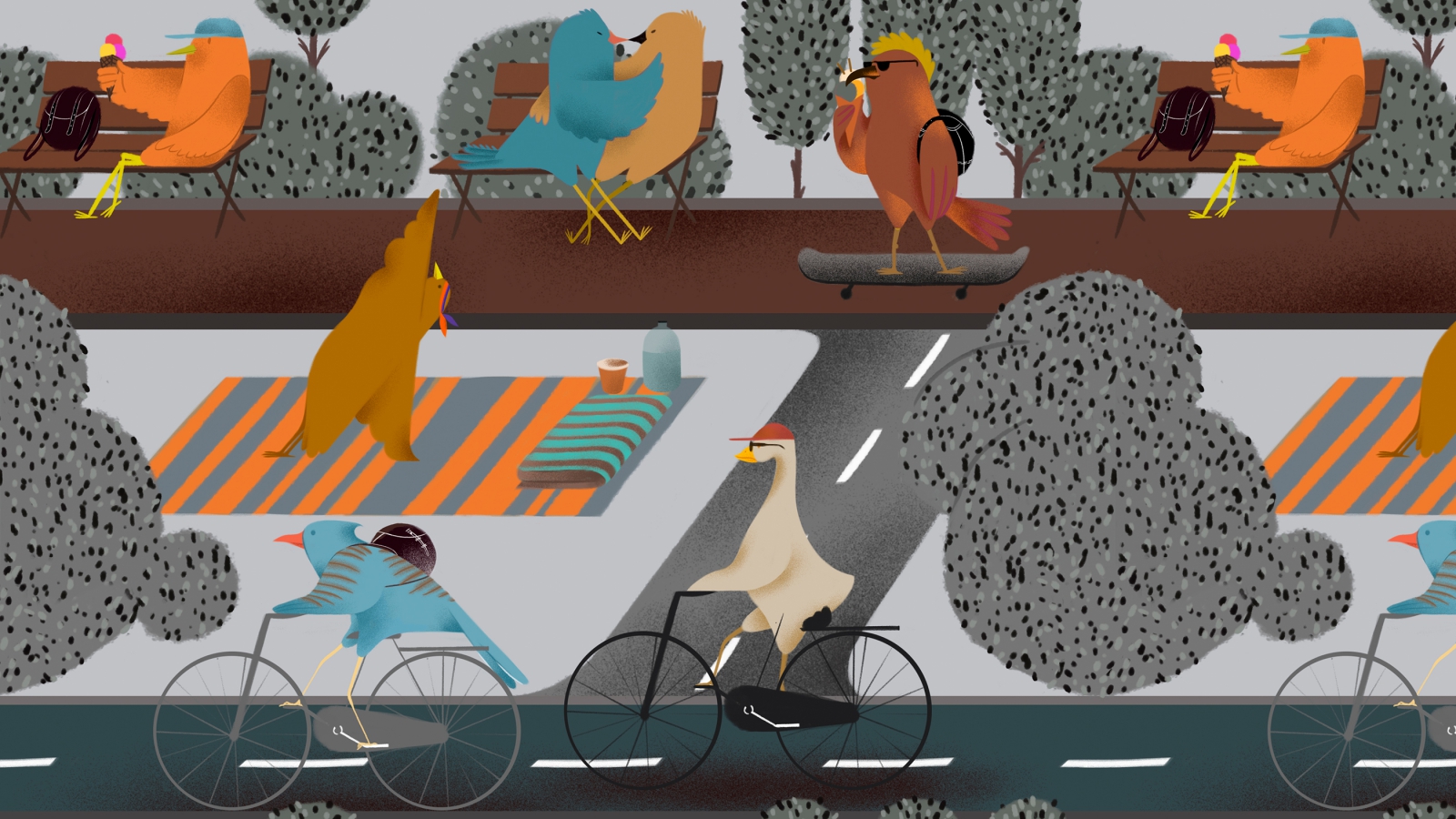 Одной из отличительных особенностей Gingerbird являются подкладки с фирменными принтами, поэтому агентство предложило трем художникам разработать иллюстрации-паттерны на тему птиц в городской среде, что каждый сделал в своем узнаваемом стиле.