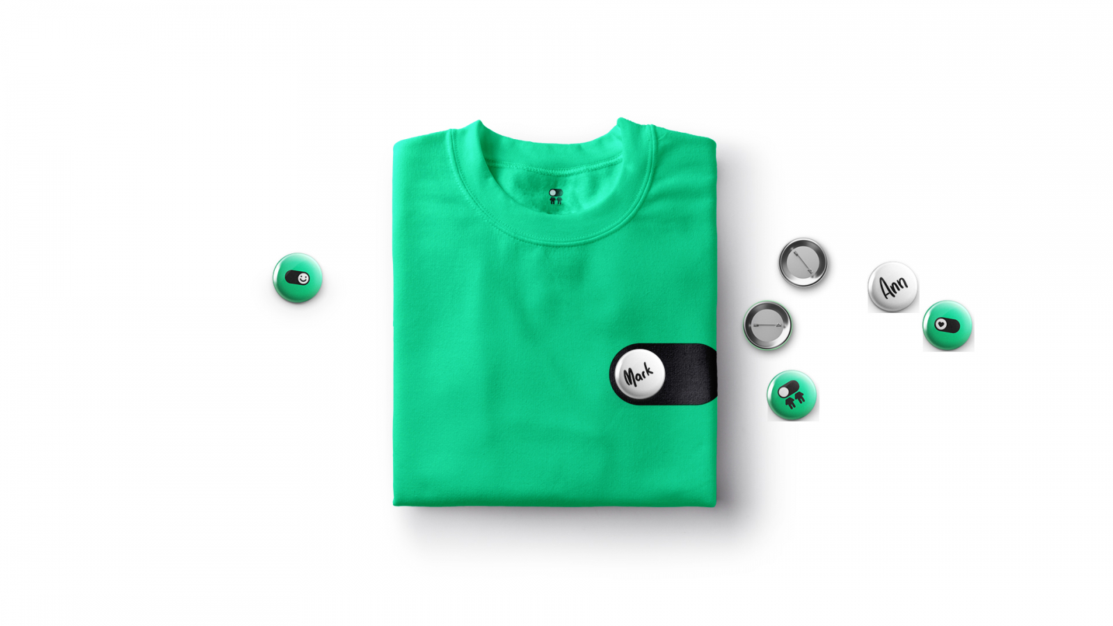 Логотип, напоминающий кнопку switch на смартфоне, демонстрирует легкость, с которой можно переключаться между разными профессиями. Этому же принципу соответствует набор иконок для приложения и сайта, корпоративные материалы и мерч.