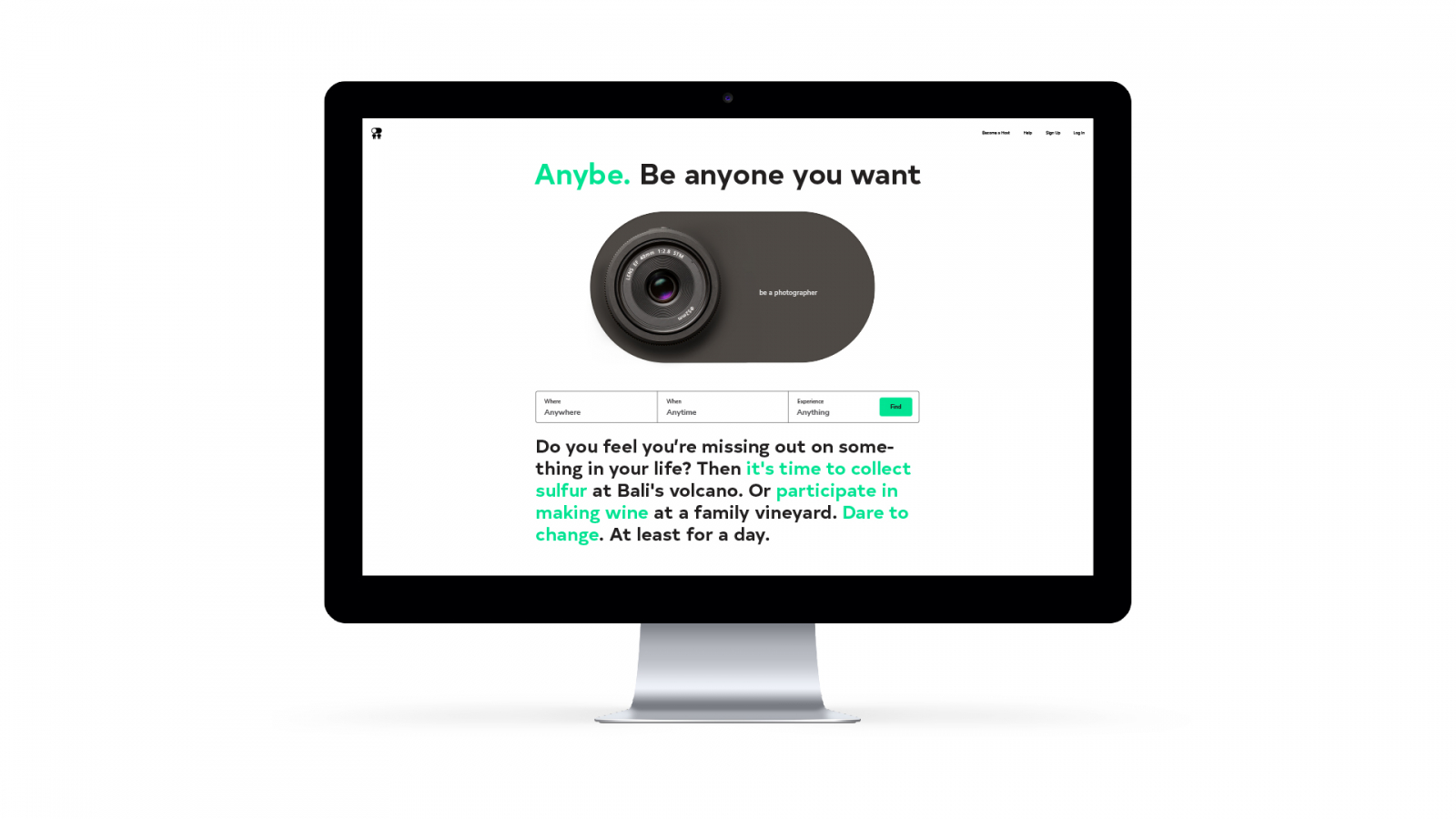 Люди ежедневно испытывают информационное перенасыщение, страдают от рутины, им не хватает новых впечатлений и приключений. Поэтому появился Anybe. Это платформа, которая соединяет гуру — профессионалов со всего мира, влюбленных в свое дело и готовых делиться своей любовью и обучать, — с теми, кому нужен новый опыт. Приложение Anybe позволяет на пару дней стать кем угодно: обжарщиком кофе, художником, плотником, бездомным, ювелиром.