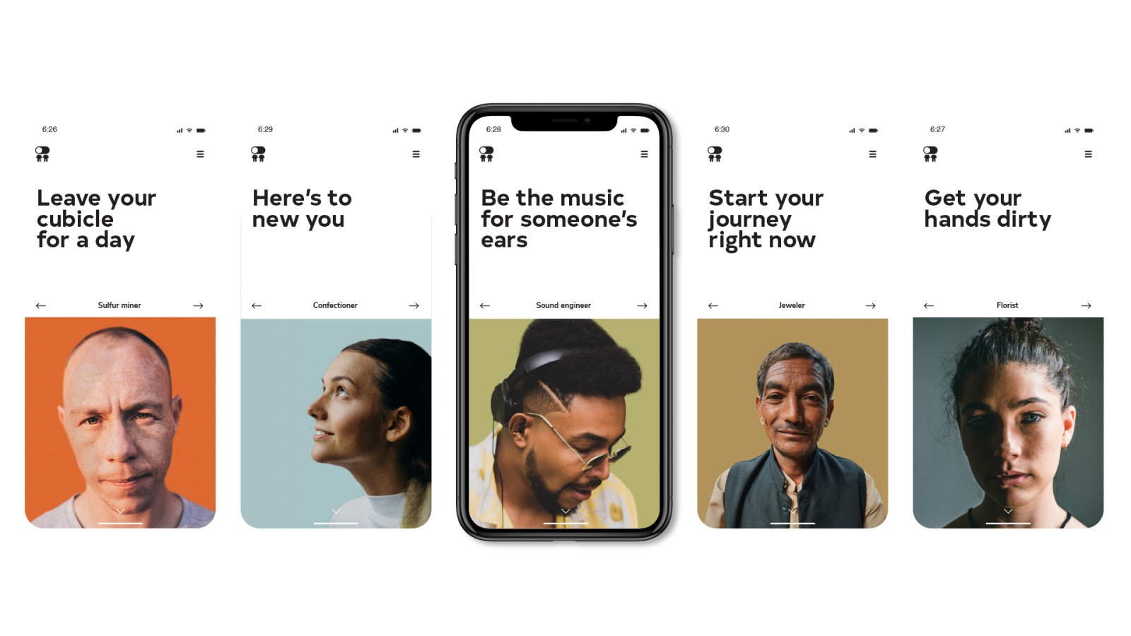 Коммуникация тоже может быть вариативной. Набор постеров и кадры в анимации по-разному соединяются друг с другом, чтобы показать самые неожиданные сочетания профессий.