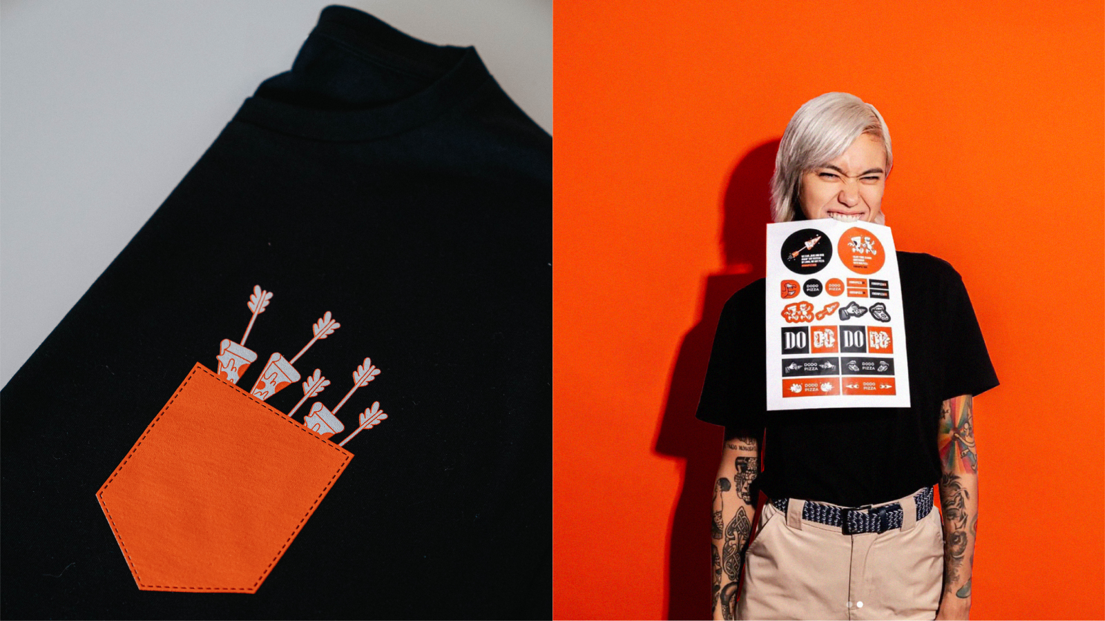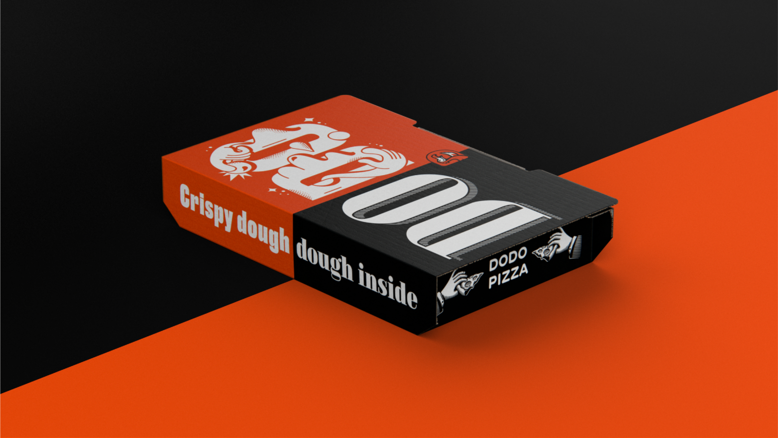 Мы начали раскладывать концепцию на разные носители: сделали несколько вариантов упаковки, показали стаканчики, униформу, постеры и баннеры, а также то, как идея может жить в интерьерах. Также мы поняли, что наш оранжевый фирменный цвет будет не таким, как в остальных проектах «Додо», а станет более неоновым, чтобы подчеркнуть бунтарскую составляющую бренда.