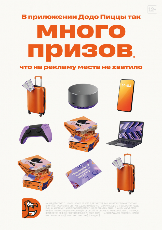 Команда «Додо» решила инвестировать максимум ресурсов в сами призы и подарки для своих клиентов, а не в масштабную, дорогостоящую кампанию. Этот факт стал и брифом и вдохновением для агентства The Clients.