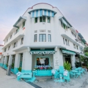 Павильон выполнен в цветах Тиффани. Также преобразилось и основное здание пекарни.