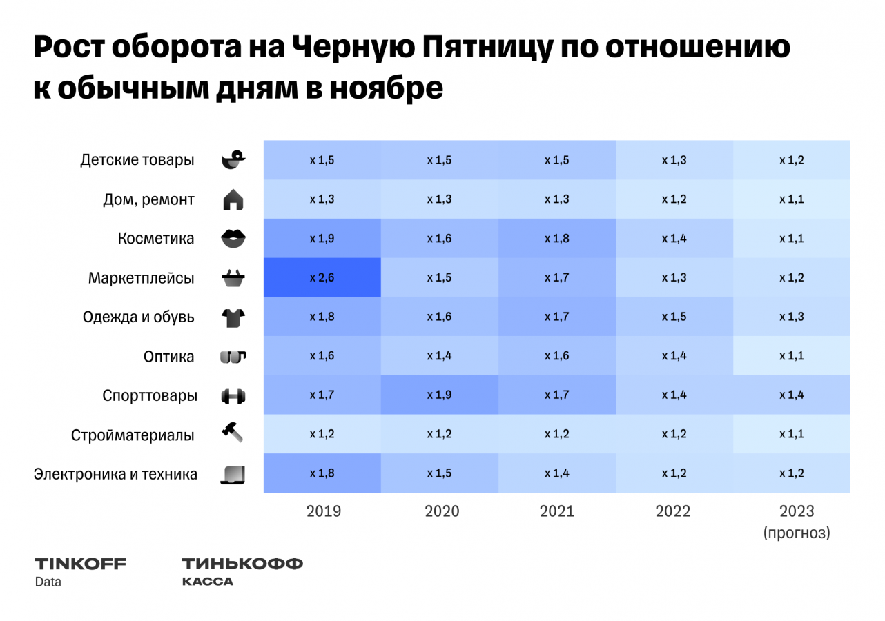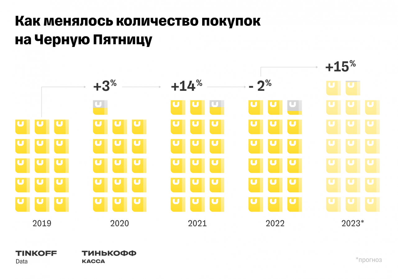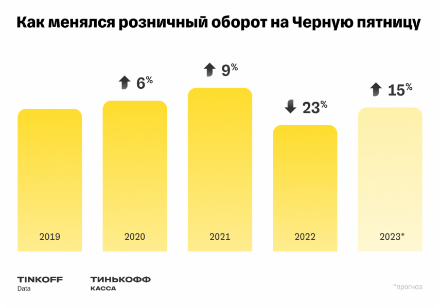 В 2022 году обороты и число покупок в «Чёрную пятницу» упали год к году на 23% и 2% соответственно.