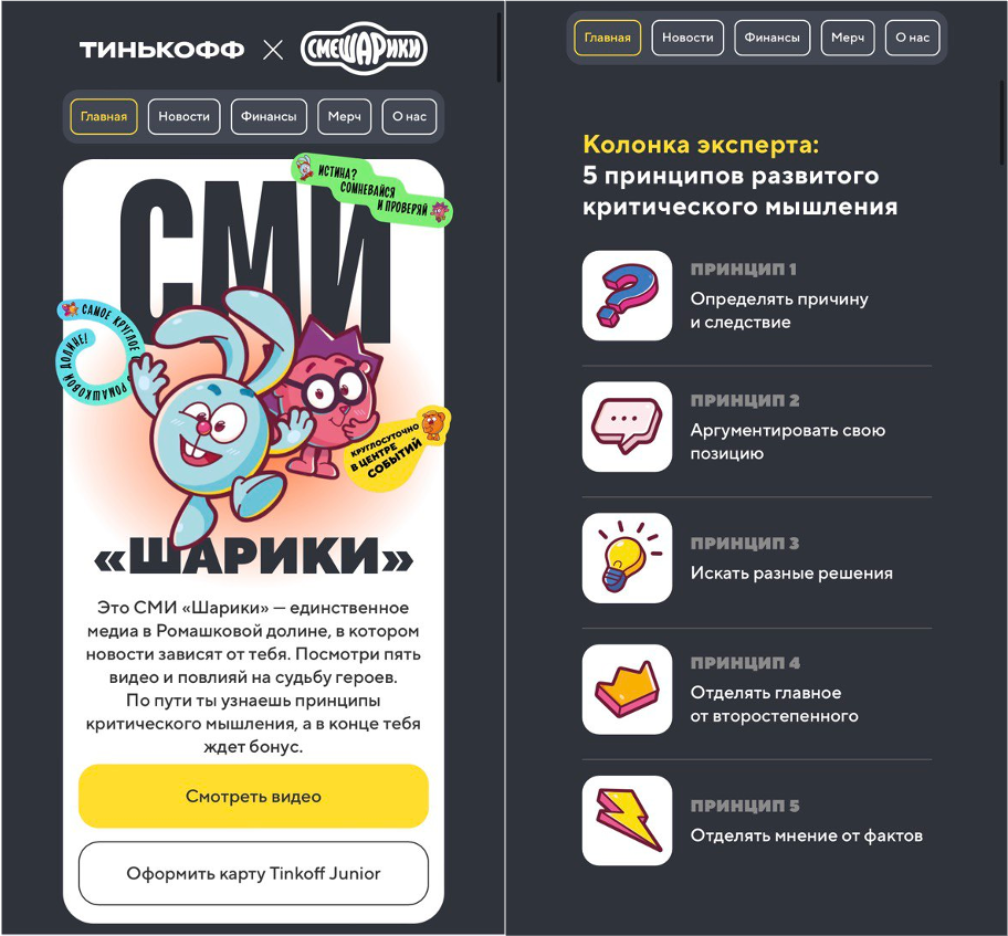 «Тинькофф Джуниор» и создатели «Смешариков» — группа компаний «Рики» — объявили о запуске образовательного проекта СМИ «Шарики». Это онлайн-газета, которая поможет школьникам развивать критическое мышление и учиться самостоятельно принимать решения.