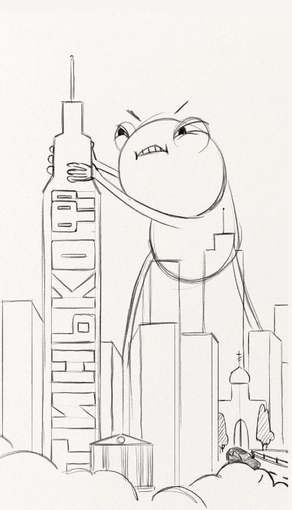 Нас удивил тот факт, что за 2023 год более 60 млн покупок получили дополнительную «Выгоду» от партнёров «Тинькофф». И что объём кэшбэка, который был выплачен клиентам, пользующимся «Выгодой» за год вырос в три раза. Мы решили, что плюсов и преимуществ так много, что кто-нибудь обязательно может от этого пострадать. Так мы придумали жабу-душнилу, которая лишается своей работы.