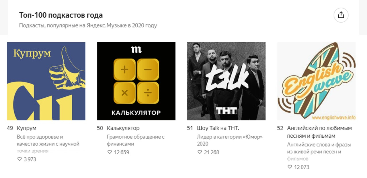 На этой же платформе он попал в список «Итоги 2020» как «подкаст с самой преданной аудиторией» и лидер в категории «Юмор».