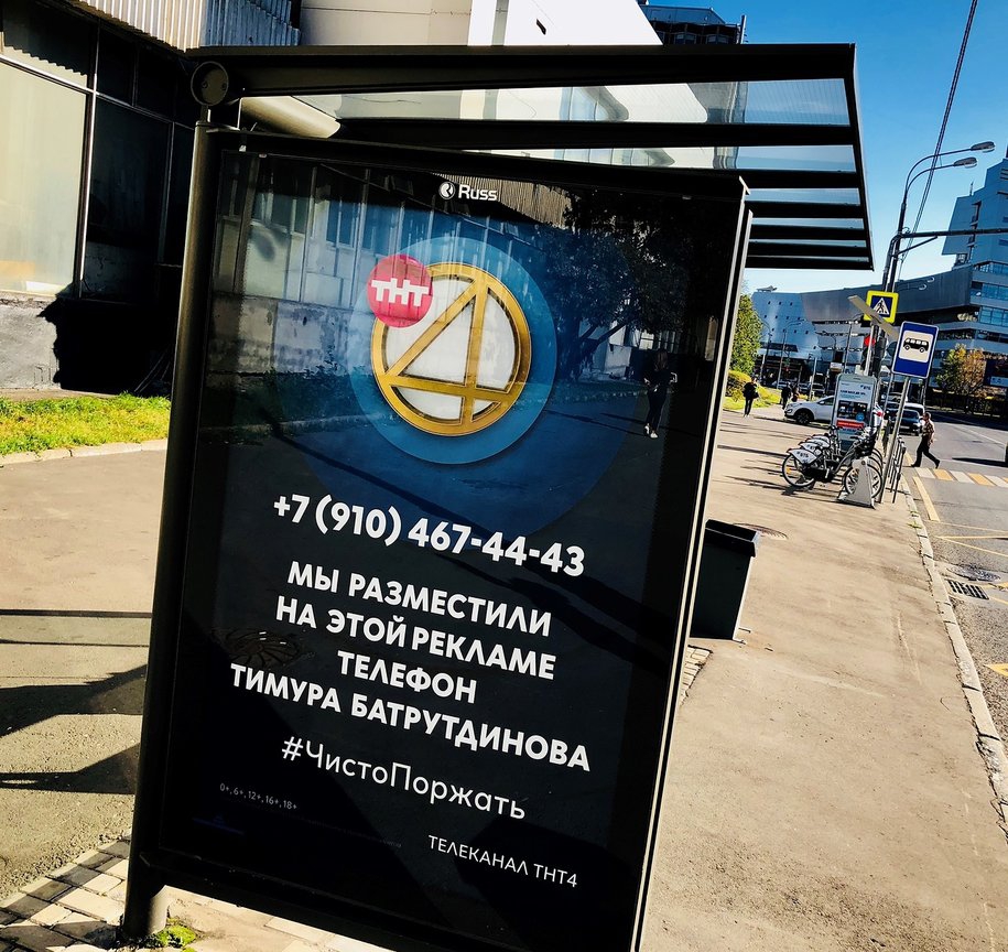 Рекламные щиты канала, на которых написан телефонный номер резидента Comedy Club Тимура Батрутдинова, появились в Москве в конце прошлой недели. Каждый дозвонившийся услышит автоответчик, который голосом артиста начнёт возмущаться, что ему звонит кто попало, назовёт баннер телеканала «тупой рекламой», и только потом анонсирует премьеру первого сезона шоу «ХБ» c 8 октября на ТНТ4.