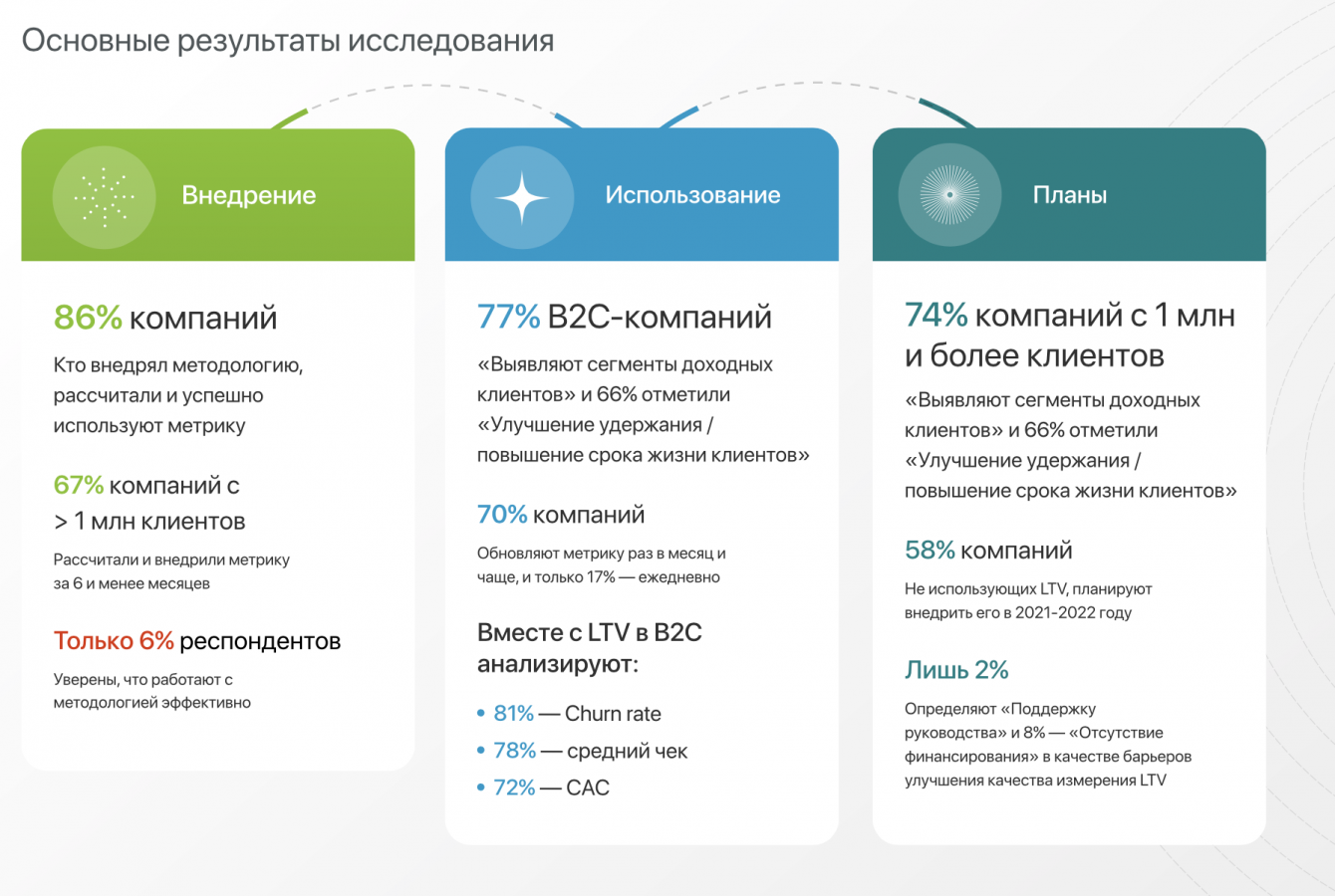 Представителей рынка спросили об актуальности, расчете и применении метрики LTV. Это прогнозная ценность отдельного клиента в деньгах, которые он принесет компании, покупая ее товары или услуги в течение своей «жизни» — периода сотрудничества с компанией. Обычно в оценке используют период одного года.