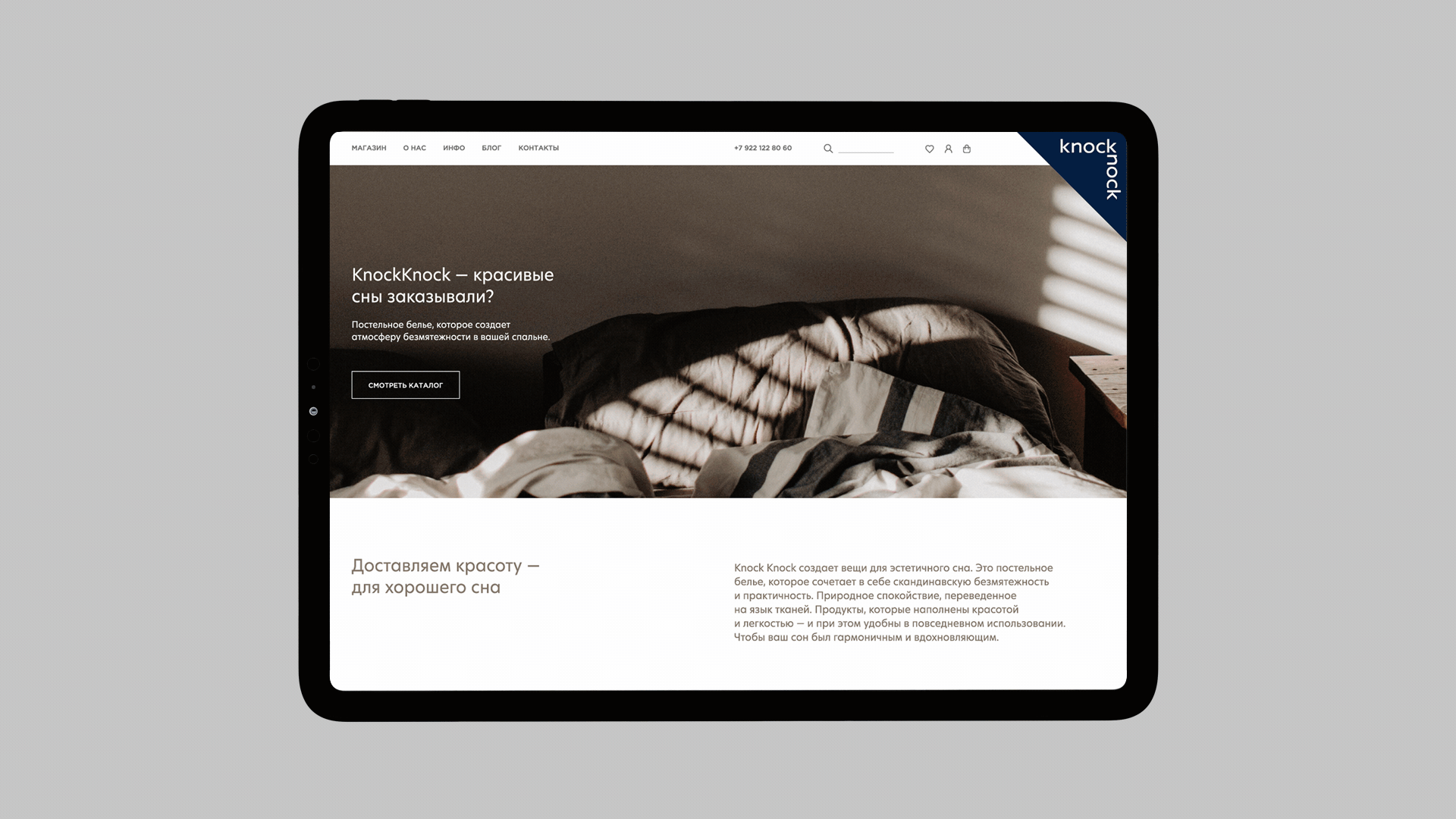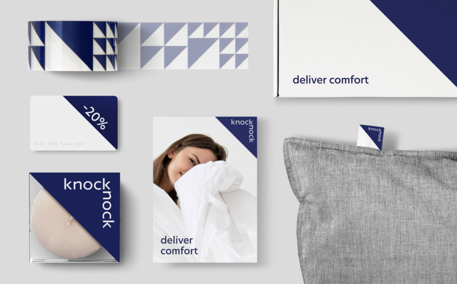 Стук в дверь стал метафорой, которая легла в основу позиционирования. Knock Knock — бренд, который доставляет комфорт в дома своих покупателей. «Стучится, когда вам нужен уют», — уточняет команда проекта.