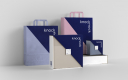 Фигура берет свое начало в логотипе, а затем, подобно ДНК, формирует бесконечно вариативную модульную систему, которая образует декоративные паттерны и определяет форматы упаковки. Дизайн избавляется от лишних визуальных элементов, создает ощущение целостности и организованности.