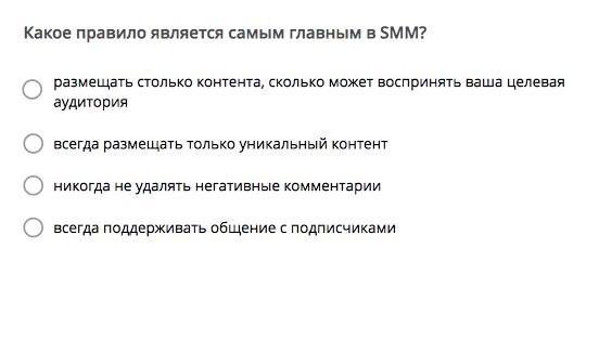 В вузах стали преподавать SMM и вирусный маркетинг. Digital-креатор Great Артем Кудрявцев опубликовал у себя в фейсбуке вопрос из экзаменационного теста по SMM, который ему прислала одна из подписчиц – студентка факультета экранных искусств Санкт-Петербургского университета кино и телевидения. Подписчики Кудрявцева не смогли однозначно определить главное правило SMM. Наши читатели активно обсуждали эту историю, но тоже не смогли определиться с правилом №1 в SMM.