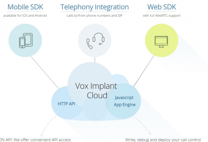 Voximplant — коммуникационная облачная платформа, которая построена и предназначена для разработчиков моильный приложений. Сервис позволяет им в режиме реального времени редактировать аудио и видео в приложениях и услугах.