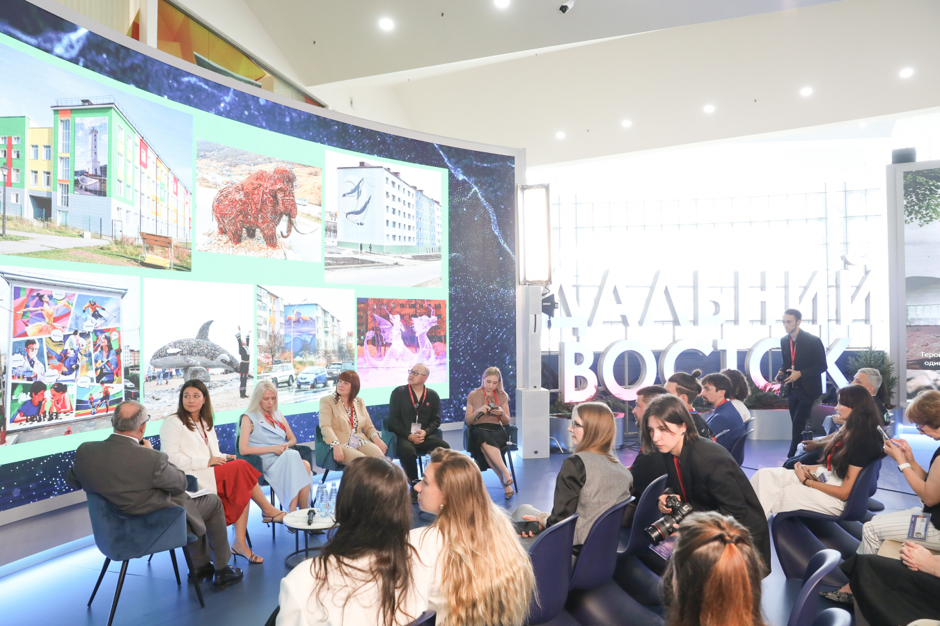 3 сентября на Восточном экономическом форуме состоялась сессия «Культура как инфраструктура повседневности: метацентры Дальнего Востока», посвященная запуску междисциплинарного проекта в сфере паблик-арта «Метацентры: город без окраин». Сессия прошла на стенде Минвостокразвития России и Корпорации развития Дальнего Востока и Арктики (КРДВ) и стала площадкой для обсуждения механизмов взаимодействия государства, муниципалитетов, бизнеса и творческих команд в создании устойчивых точек притяжения в современной городской среде — от создания концепции до ее реализации.