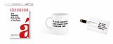 Теперь у «Тотального диктанта» имеется сувенирная продукция, оформленная в едином стиле. На носители нанесены забавные фразы, обучающие правописанию. Ударение здесь ставится в «сложных», но общеупотребительных словах, в которых часто делают ошибки или сомневаются (при этом ошибка не всегда фонетическая). Этот же подход использовался в рекламных сообщениях — на афишах и интернет-баннерах. Для маек и сумок основным принтом стал паттерн из графических элементов, знакомых по урокам русского языка. Стикерпак включает большую букву А — она стала самостоятельным символом, который смело можно приклеить на ноутбук или лонгборд, и знаки ударения.