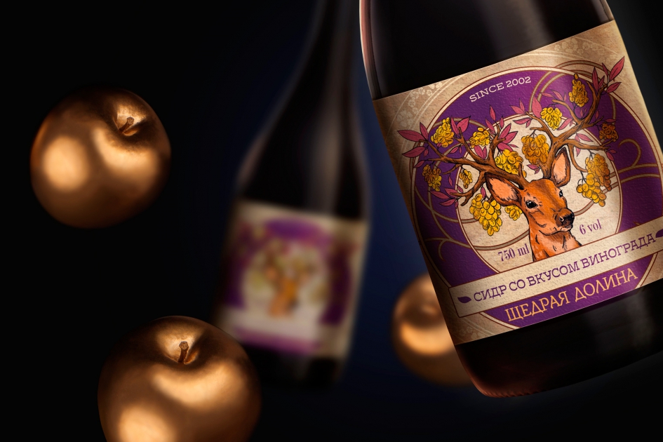 Пивоваренный завод «Альпина» выпускает на рынок новую торговую марку сидров «Щедрая долина». Название и дизайн упаковки разработало агентство A.STUDIO.