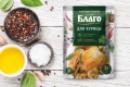 Лицевую сторону пяти SKU приправ украшают изображения аппетитных блюд и ингредиентов. Обратная сторона товара представляет собой гармоничное сочетание рецепта блюда с фронтальной части и уникальной иллюстрации штрих-кода. Также обратная сторона напоминает о мультикатегорийности бренда изображениями масла и консервированного горошка «Благо».