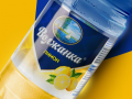 В результате рестайлинга на этикетке бутылки появились диагональные линии. Выполненные цветом, близким к гамме фона, они не нарушают стройность базового дизайна, при этом создают новое, более динамичное настроение. Фудгруппа также решена с небольшой «изюминкой»: изображение лимона состоит из полигонов, освежая восприятие.