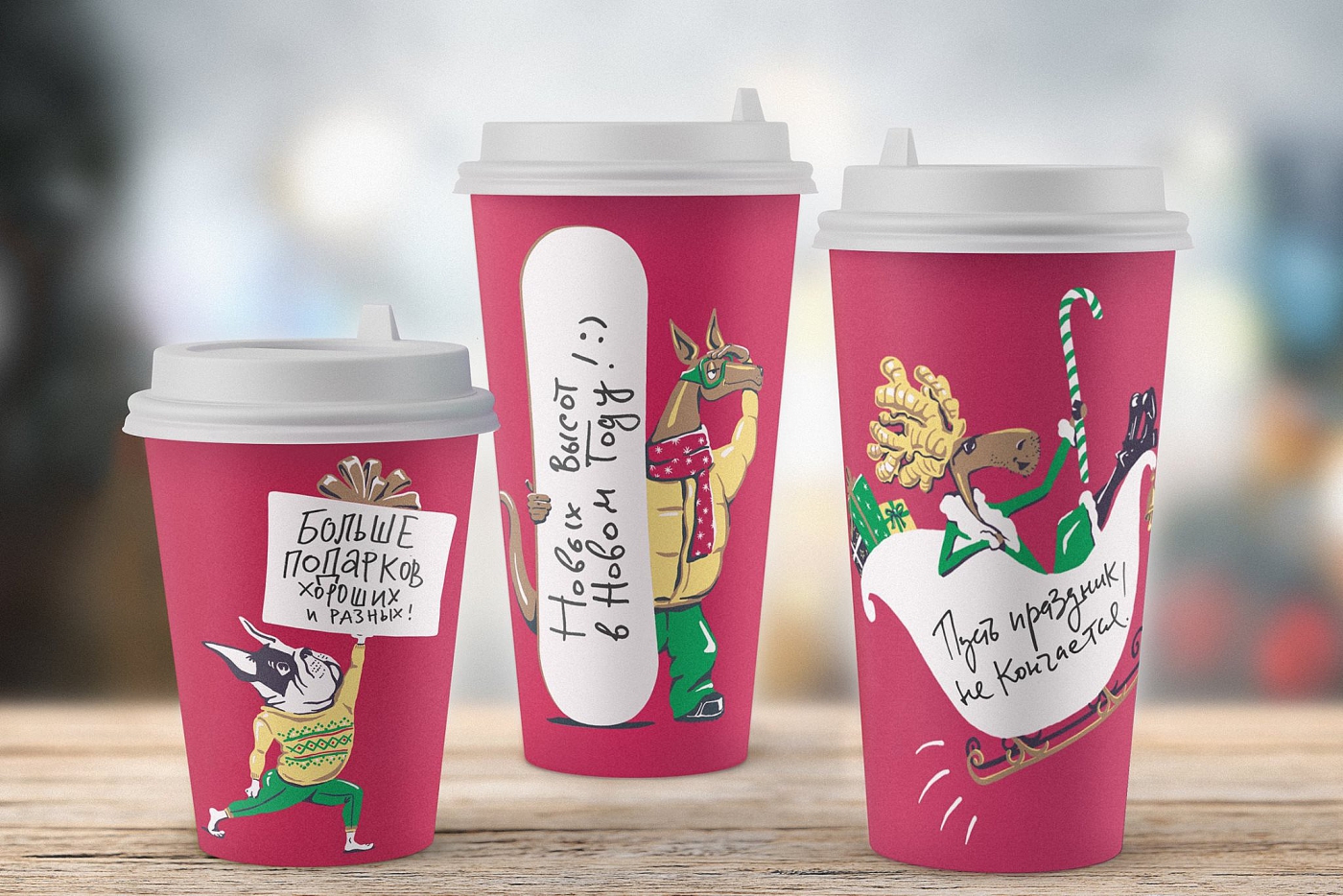 Веселые животные очень быстро стали частью фирменного дизайна PRIME. Накануне Нового года они немного сменили имидж, напоминая о приближении зимних праздников. К примеру, имбирный лось, украшавший лимонадные этикетки трансформировался в Деда Мороза, гордо восседающего в санях, и стал визитной карточкой пол-литровых стаканов, а на упаковке объемом 300 мл появился йог-бульдог, несущий коробку с подарками. Стакан объемом 700 мл получил в качестве фирменного персонажа забавного кенгуру-сноубордиста, который летом всем запомнился в роли серфера.