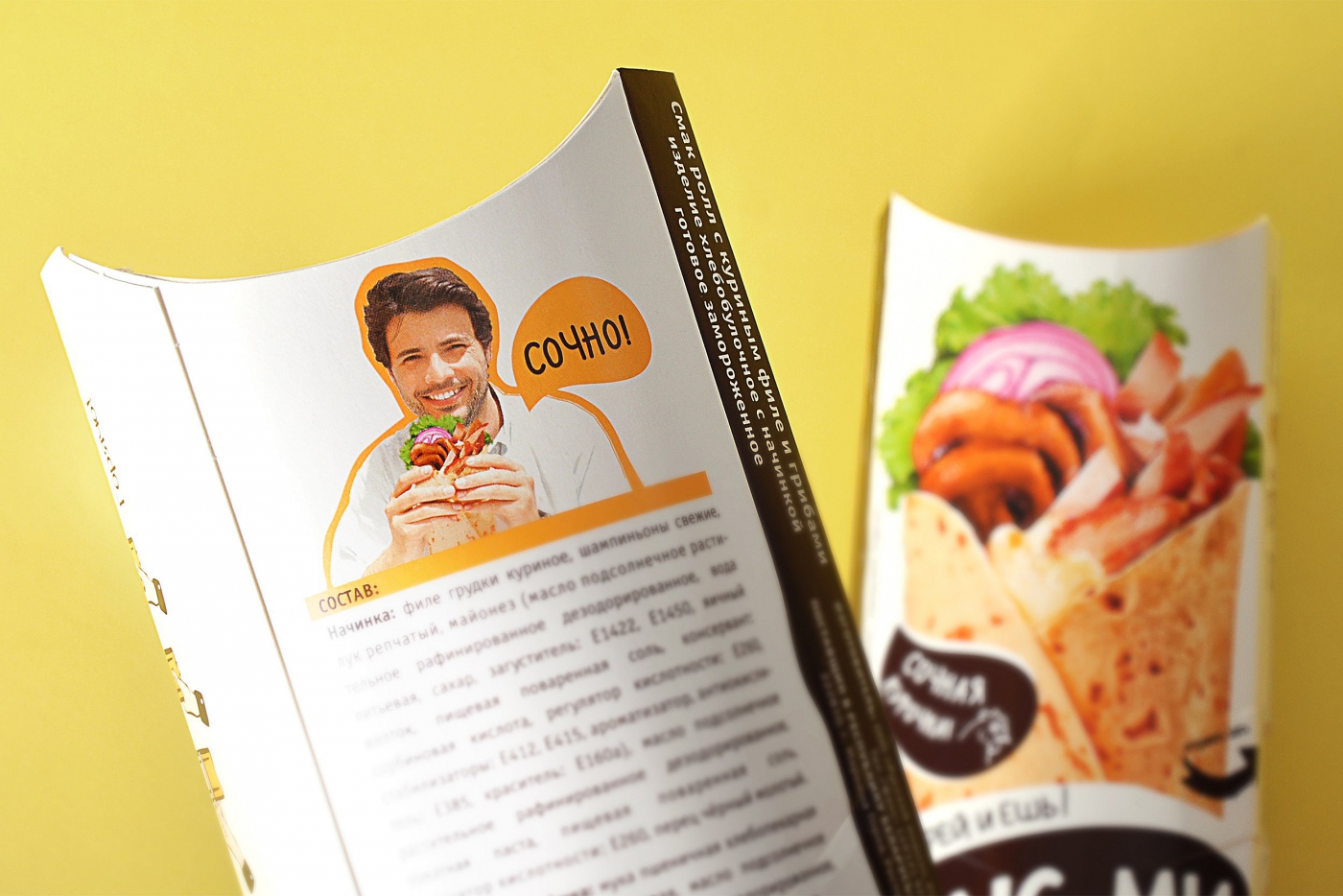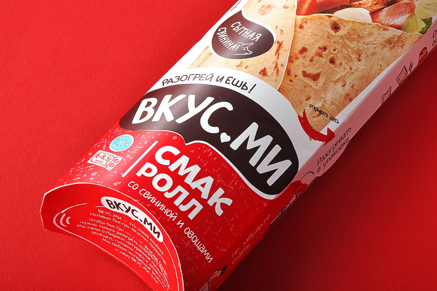 Дизайн упаковки говорит о том, что продукт доступен, его можно взять с собой или без лишних хлопот разогреть. В супермаркетах, на автозаправках, в небольших городских магазинах — товар везде заметен. В результате получился классный продукт для тех, кто хочет всё успеть, не остаться голодным и при этом приложить минимум усилий.