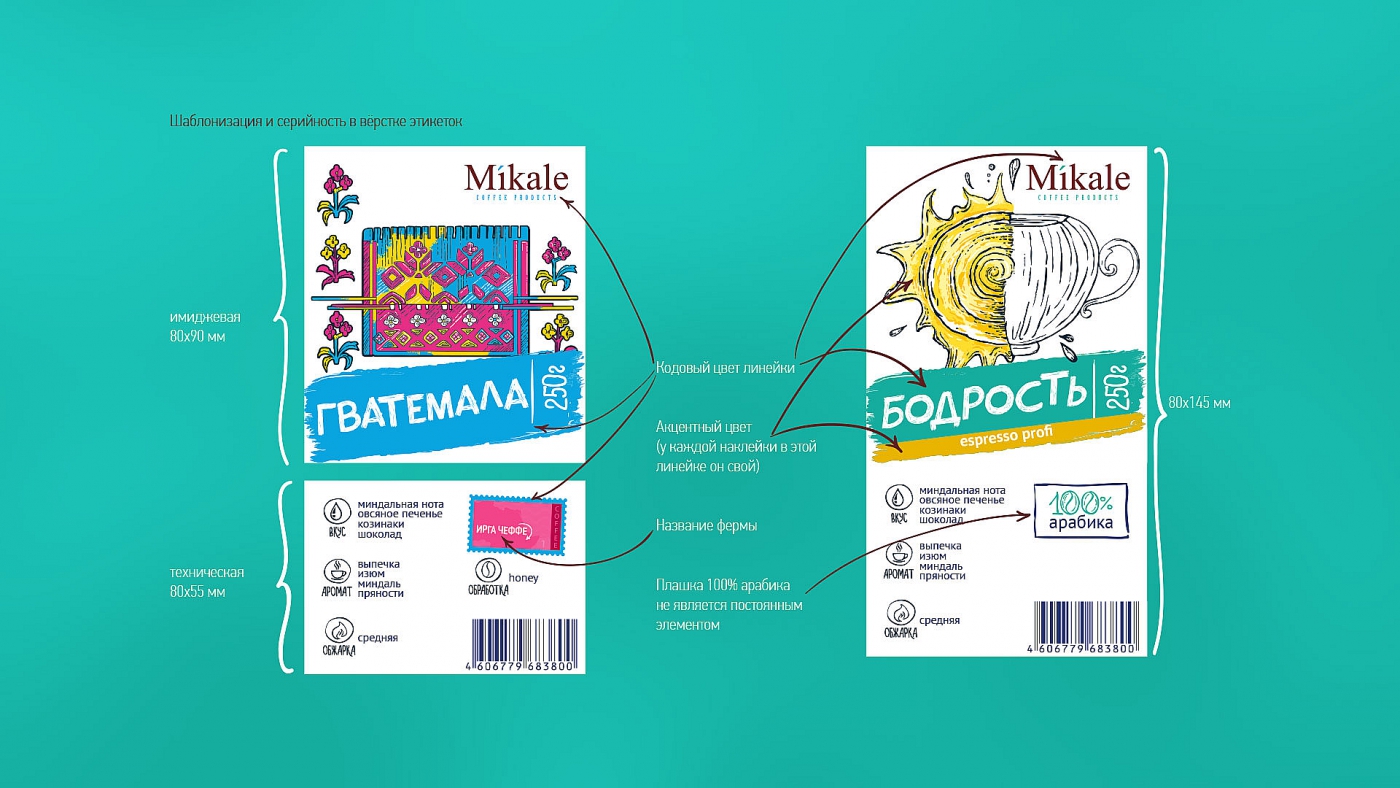 Дизайн этикетки для фабрики обжарки кофе Mikale