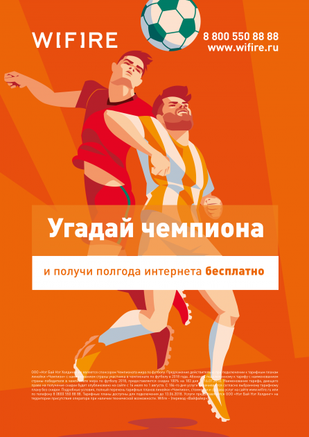 Для участия в акции, необходимо выбрать тарифный план не позднее 13 июня 2018 года. Абонент автоматически становится участником конкурса и может выиграть полгода бесплатного интернета. Кроме «ставки» на страну-победительницу, абоненты пакетных услуг могут получить годовой ТВ пакет Wifire TV 70+, для этого им нужно угадать счет в финале игры, указав свой прогноз в личном кабинете.