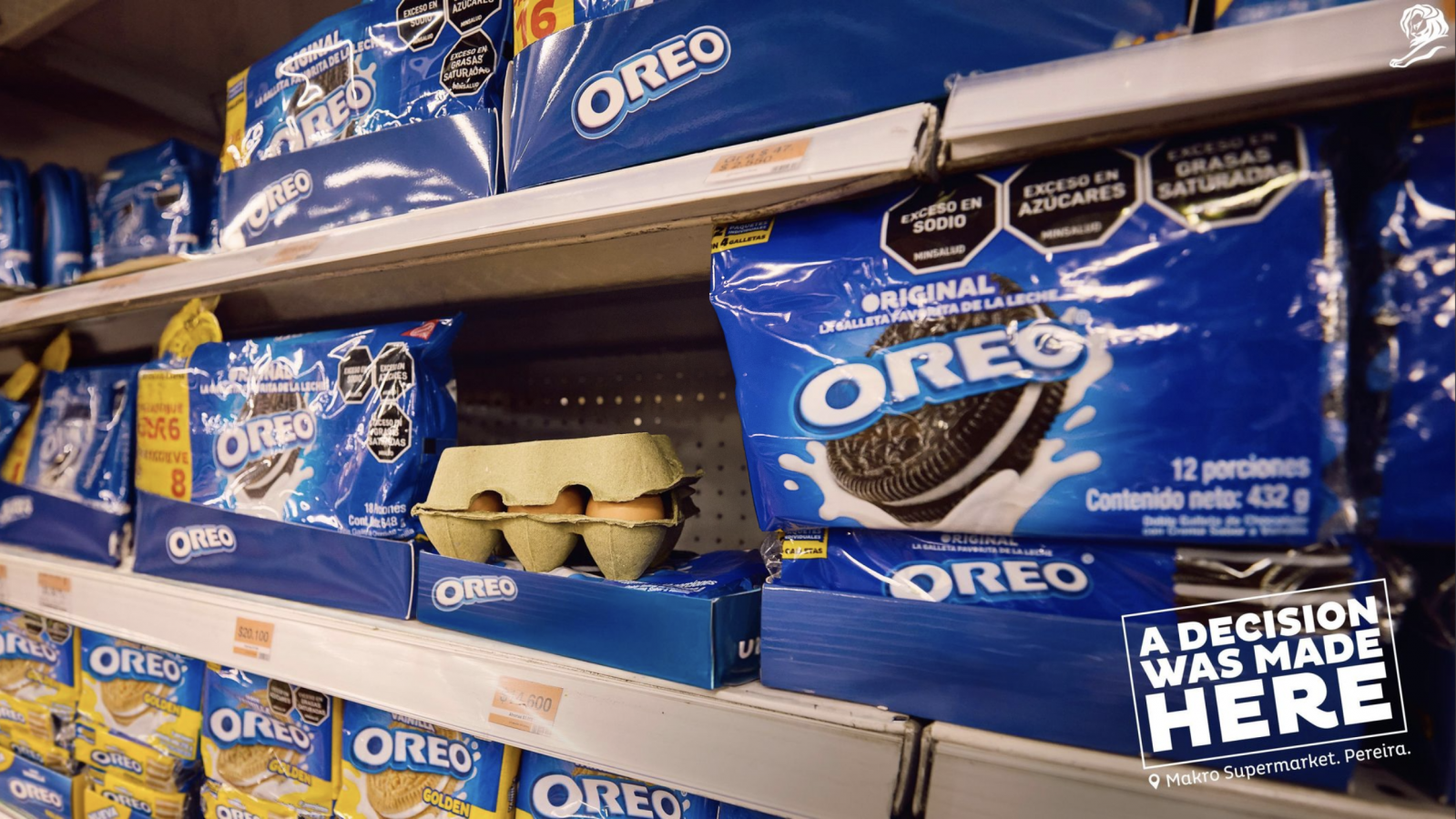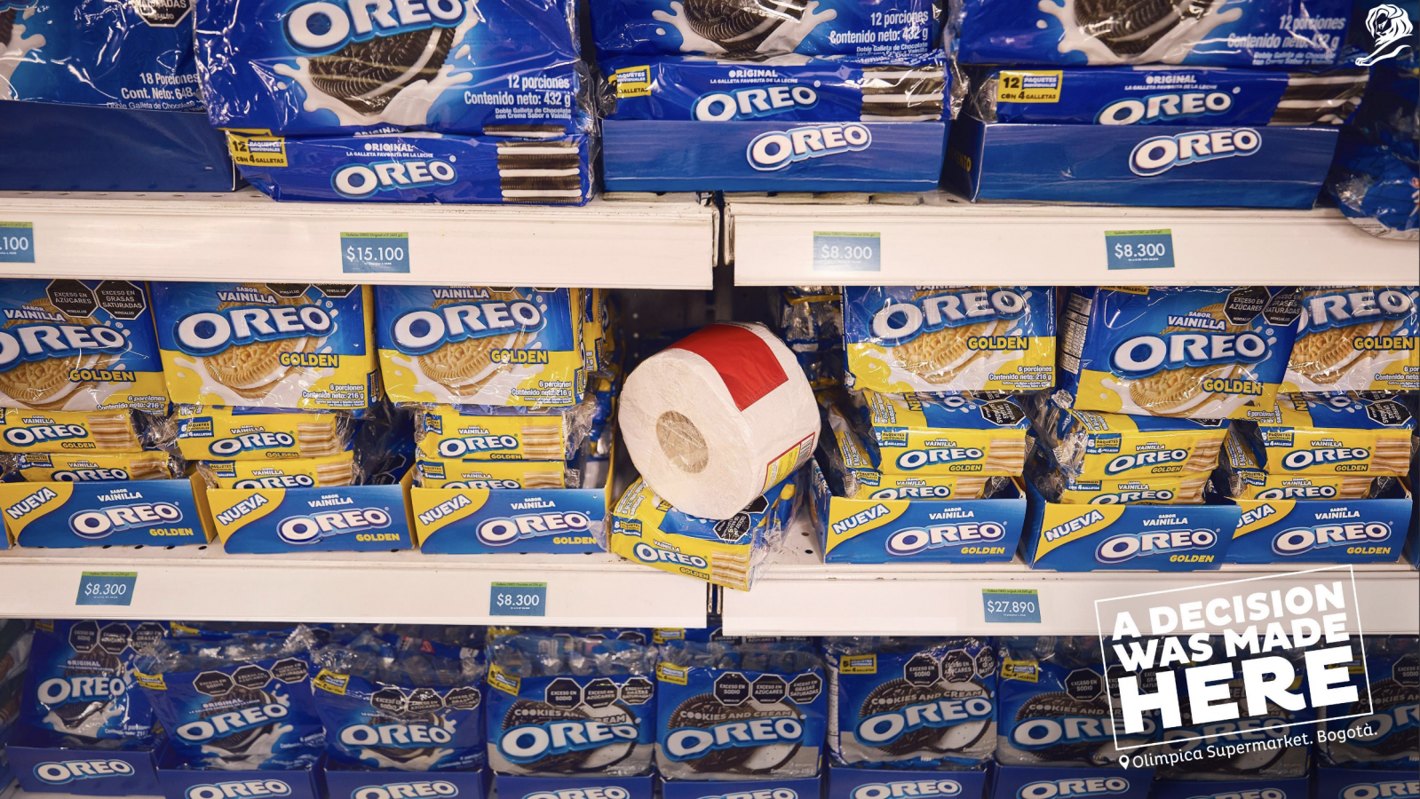 Еще один призер именитого рекламного фестиваля — колумбийское агентство LePub, создавшее кампанию для Oreo, где магазинный беспорядок превратили в искусство. Товары, оставленные покупателями на полках с печеньем, стали символом того, что ради Oreo люди готовы бросить все остальное.