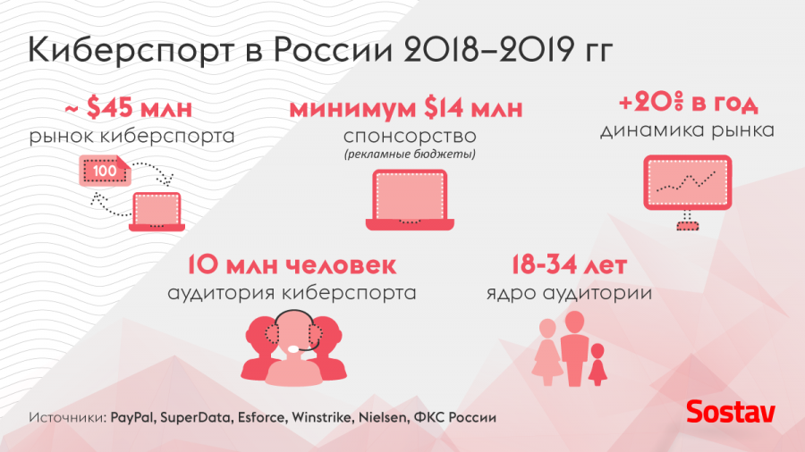 Киберспорт — одно из самых быстрорастущих и перспективных направлений digital-индустрии. К 2022 году глобальная аудитория eSports приблизится к 300 млн, что сравнимо с нынешней аудиторией NFL, прогнозирует Goldman Sachs. В России киберспорт привлекает аудиторию, уже превышающую 10 млн человек (данные Nielsen), и многие крупные бренды. В 2018 году рекламодатели потратили на интеграции в российский киберспорт минимум $14 млн.
