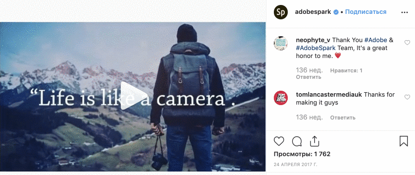 Видео постят все — и пользователи, и бренды. Это не просто удобный формат донесения информации (торгового предложения, преимуществ, позиционирования и др.), но и возможность лично познакомиться со своей целевой аудиторией. Такой формат создает иллюзию живого общения и формирует доверительную атмосферу.