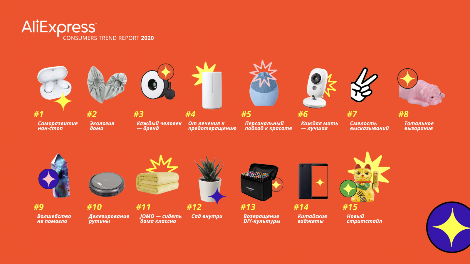 Появление новых профессий и запрос на многофункциональность сотрудников увеличили интерес к саморазвитию, считают аналитики. Это повышает спрос как на сами курсы повышения квалификации, так и на товары для планирования времени и повышения производительности. Так, в 2019 году пользователи AliExpress искали планировщики (более 11 тыс. запросов) и беспроводные наушники (более 500 тыс. запросов). Растет спрос на записные книжки и сопутствующие товары — наклейки, трафареты и скотч.