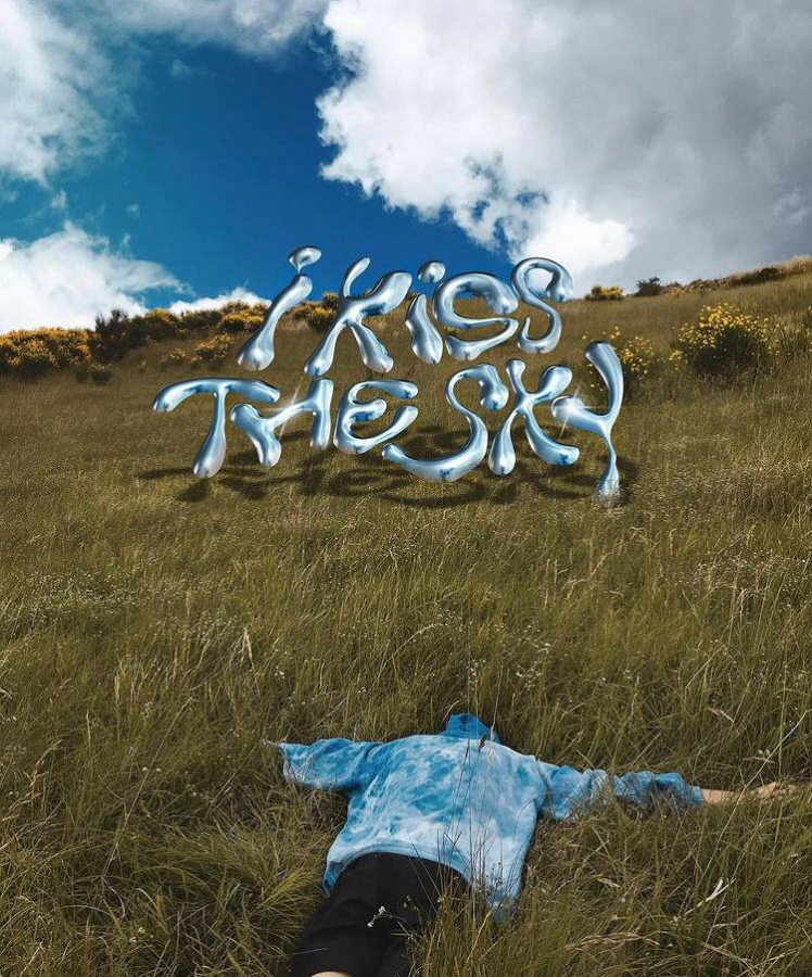 В сочетании с хромированными металлическими тиснениями мы создаем future-эффект, хотя мы чувствуем, что future уже наступило. Бонус: тема жидких форм и природных бликов этим летом вдохновила меня на создание гелевого шрифта — его можно бесплатно скачать по ссылке.
