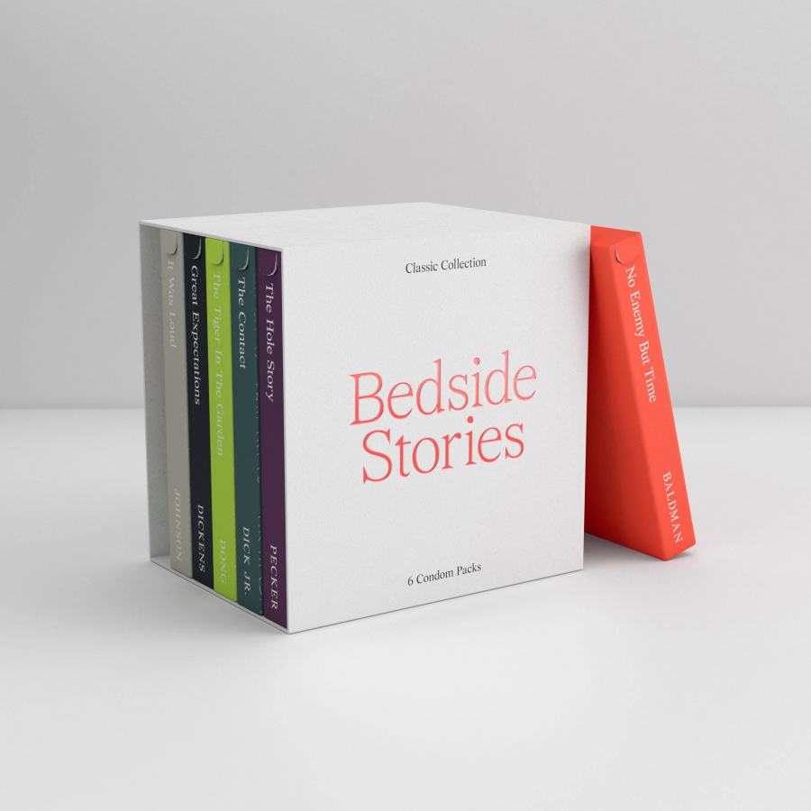 Дизайнеры из агентства Dada решали ту же проблему публичности. Они придумали концепт упаковки презервативов «Истории, рассказанные на ночь» — для скромных пользователей самой читающей страны.