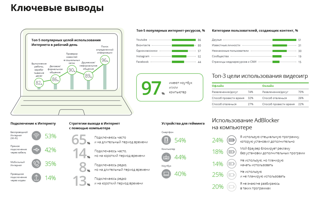 Средний уровень медиаохвата россиян в 2019 году составил 52%, незначительно сократившись по сравнению с прошлым годом. Снизилась доля граждан, посещающих театры и концерты, популярность прослушивания радио продолжает падать. Но интернет остается одним из наиболее динамично развивающихся медиаканалов и все чаще используется в повседневной жизни. Растёт аудитория и у видеоигр, — делают вывод аналитики Deloitte на основании собственного исследования.
