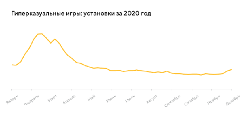Наибольший рост показал финтех — 51% YoY. 2020-й стал триумфальным и для игр, в особенности гиперказуальных: количество установок в этом сегменте выросло на 43% по сравнению с 26% у прочих жанров.