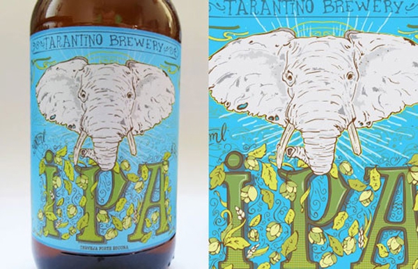 5. Рисованные упаковки пива рассматриваются как самый интересный тренд. Примером служит упаковка Tarantino Brewery со слоном и листьями на ярко-синем фоне.