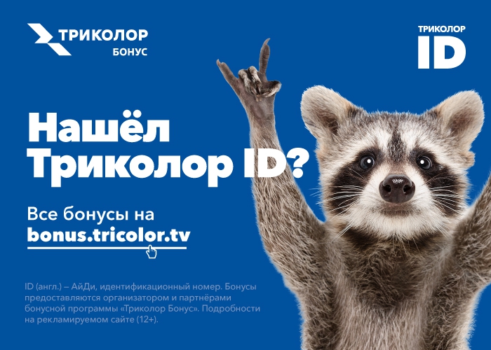 Для знакомства клиентов с «Триколор. Бонус» оператор запустил федеральную рекламную кампанию, состоящую из двух частей. Первая — с акцентом на поиск Триколор ID, вторая — с акцентом на суть предложения.
