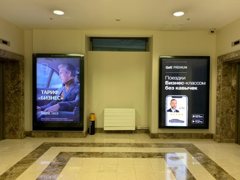 У нас идёт точечная кампания в БЦ класса А. После осмотра мест размещения команда маркетинга заметила такое соседство. Было решено внести изменения в согласованный ранее креатив.