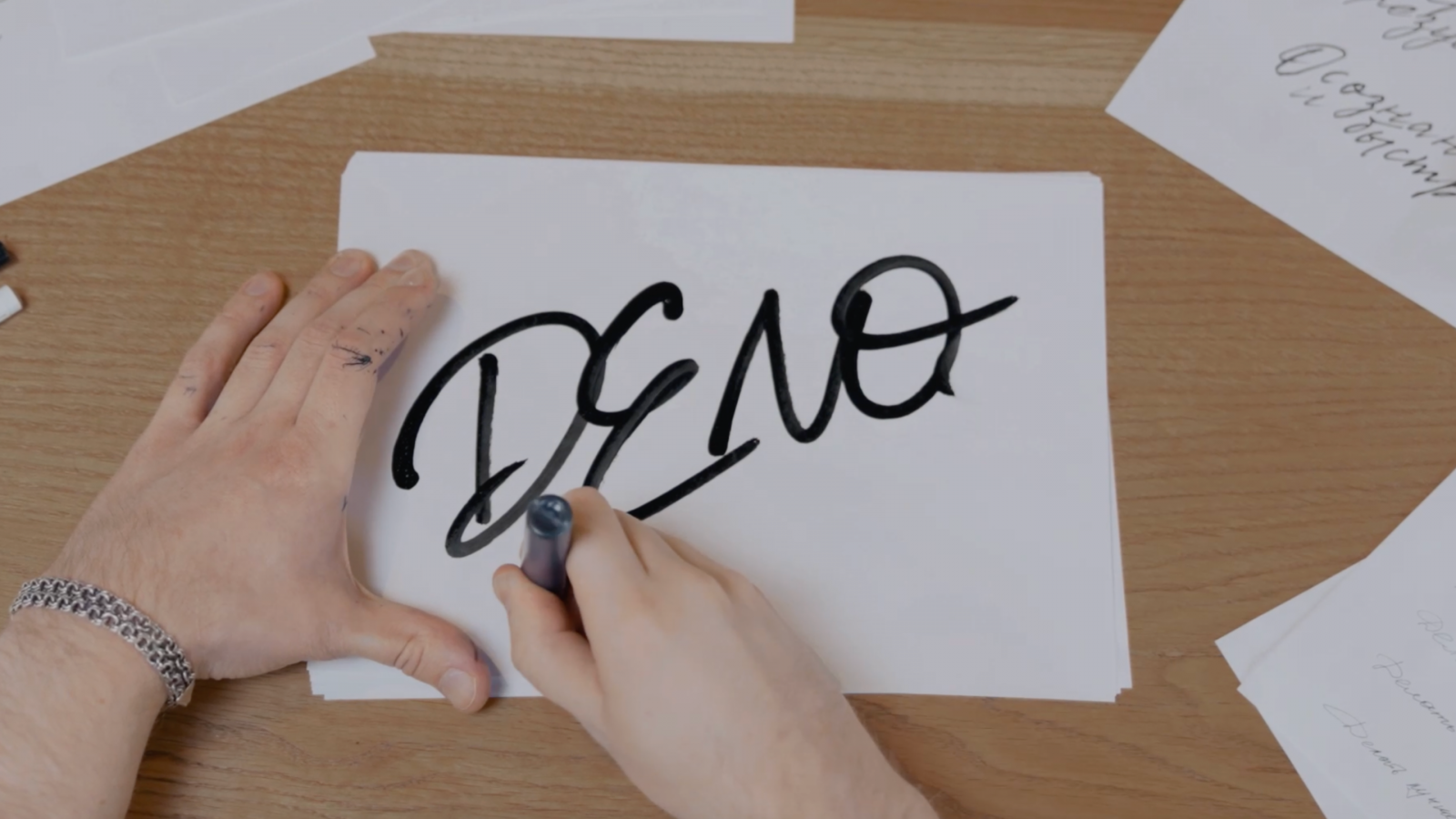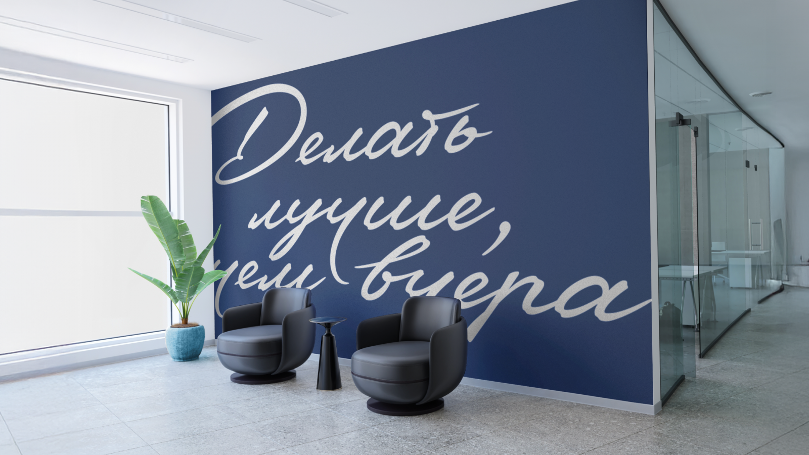 В офисах и онлайн собрали сотни рукописных вариантов ценностей от сотрудников из разных подразделений. Все материалы передали каллиграфу. Он изучил манеру письма каждого, отобрал самые выразительные варианты, выделил в них общие элементы и на их основе создал единый «корпоративный почерк».