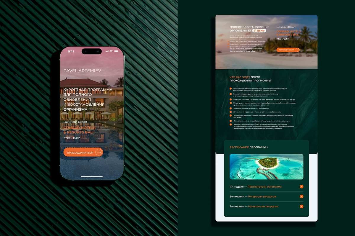 Fabula Branding разработали UX/UI-дизайн сайта для программы полного восстановления организма, созданной реабилитологом Павлом Артемьевым. Визуальный стиль строится на натуральной палитре, ассоциирующейся с внутренней гармонией, и подчёркивает научный подход и индивидуальность. Минималистичная типографика, природные изображения и понятная структура делают сайт не только эстетичным, но и эффективным инструментом коммуникации и продвижения. Он работает как продолжение философии клиента — с вниманием к деталям и заботой о балансе.