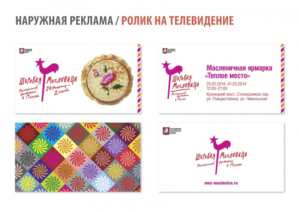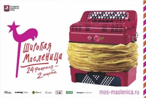 «Первое, что приходит на ум при слове масленница, - это русские блины, - рассказал о своей работе г-н Цеслер. - Именно из этого я исходил при создании образного ряда московской Масленницы. Отсюда золотистые и малиновые тона, которые создают колорит. В фирменном стиле также используются изображения традиционных музыкальных инструментов и петушка на палочке».