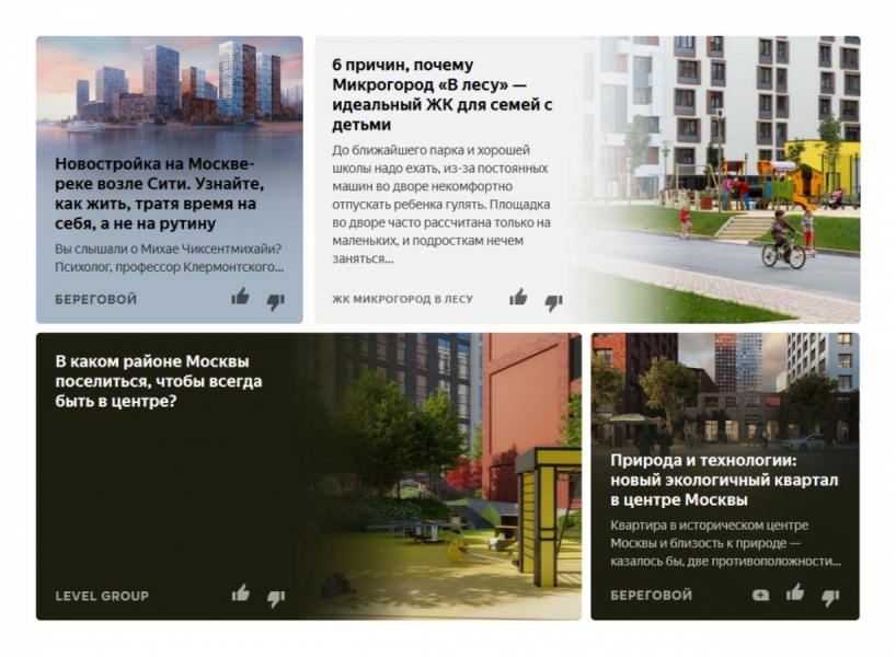 - Сделать упор на уникальность локации. Расположение — один из ключевых факторов при покупке квартир в этом сегменте. Поэтому в «Дзене» оказываются популярнее статьи о расположении, а не планировках квартир.