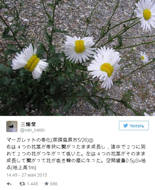 Твит с изображением ромашки-мутанта был сделан жительницей города Насушиобара недалеко от Фукусимы.