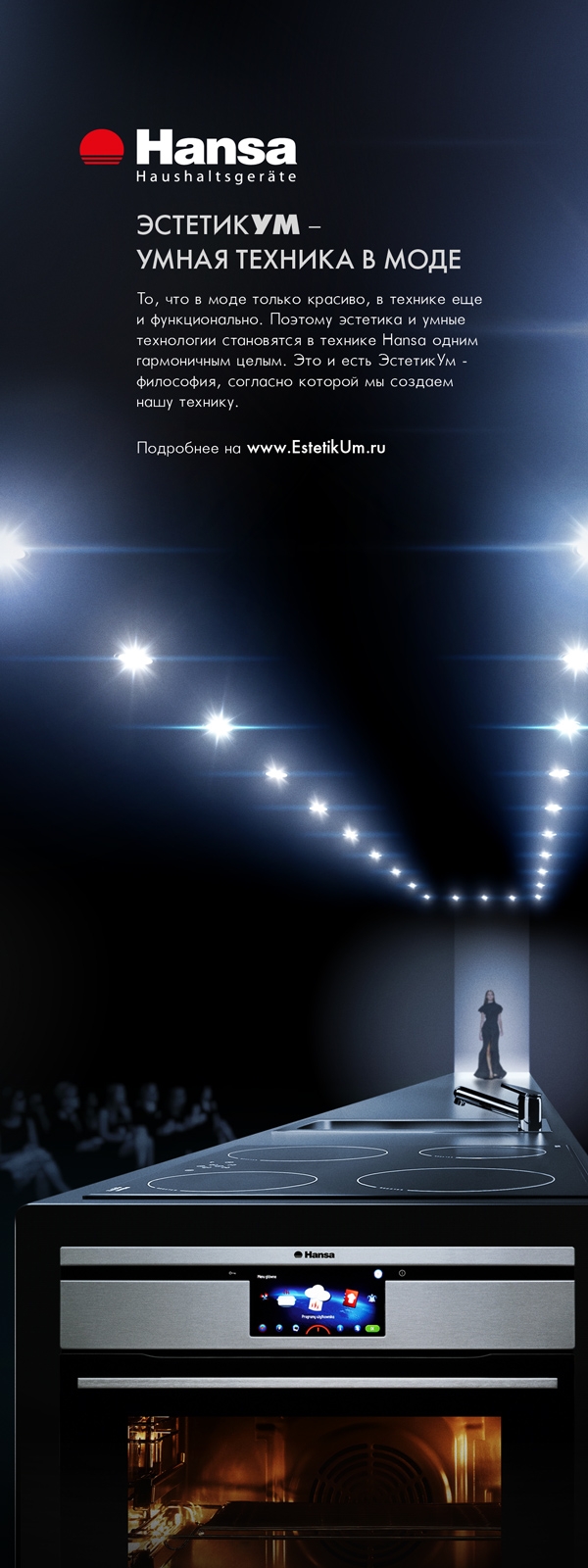 Слоган кампании – «Hansa Эстетикум - умная техника в моде». «Мы воплотили идею Smart & Fashionable, которая является ключевой для позиционирования бренда - говорит исполнительный креативный директор группы TWIGA Михаил Елагин. – Чтобы создать ощущение, что у вас дома будет не просто стильная и модная техника, но умная, продуманная как с точки зрения дизайна, так и удобства и функциональности, – это и есть концепция Эстетикум».