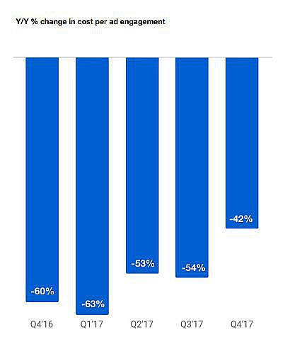 Владелец сервиса микроблогов продолжит совершенствовать рекламные продукты за счет повышения эффективности и улучшения системы измерений. Компания продолжит осваивать новые каналы, в том числе онлайн-видео, и внедрять новые способы закупки инвентаря. Так, Twitter уже начал тестировать programmatic. Цена за вовлечение (cost per engagement, CPE) упала на 42%, а оптимизация рекламной платформы позволила команде поднять уровень вовлеченности на 26% и увеличить ROI на 18%.
