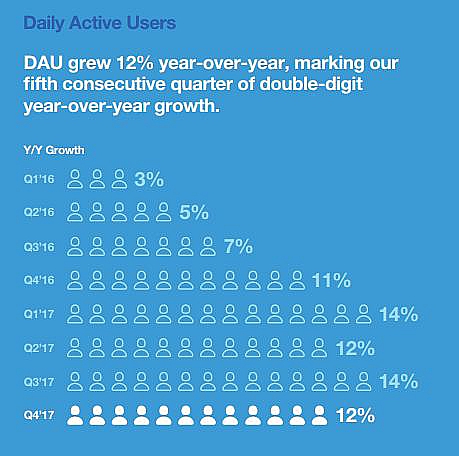 Дневная аудитория Twitter выросла на 12% в годовом выражении. Месячная аудитория по сравнению с предыдущим кварталом не изменилась и осталась на уровне 330 млн пользователей. На фоне оптимистичных новостей акции компании подорожали на 18%.