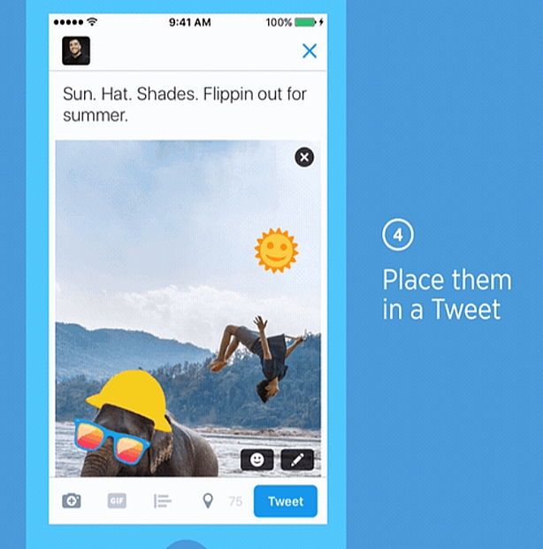 Twitter новую функцию, которая позволит пользователям сделать фотографии пользователей креативными. Речь идет о стикерах (#Stickers) с иконками и эмодзи, которые можно будет располагать прямо на фотографиях в твитах.