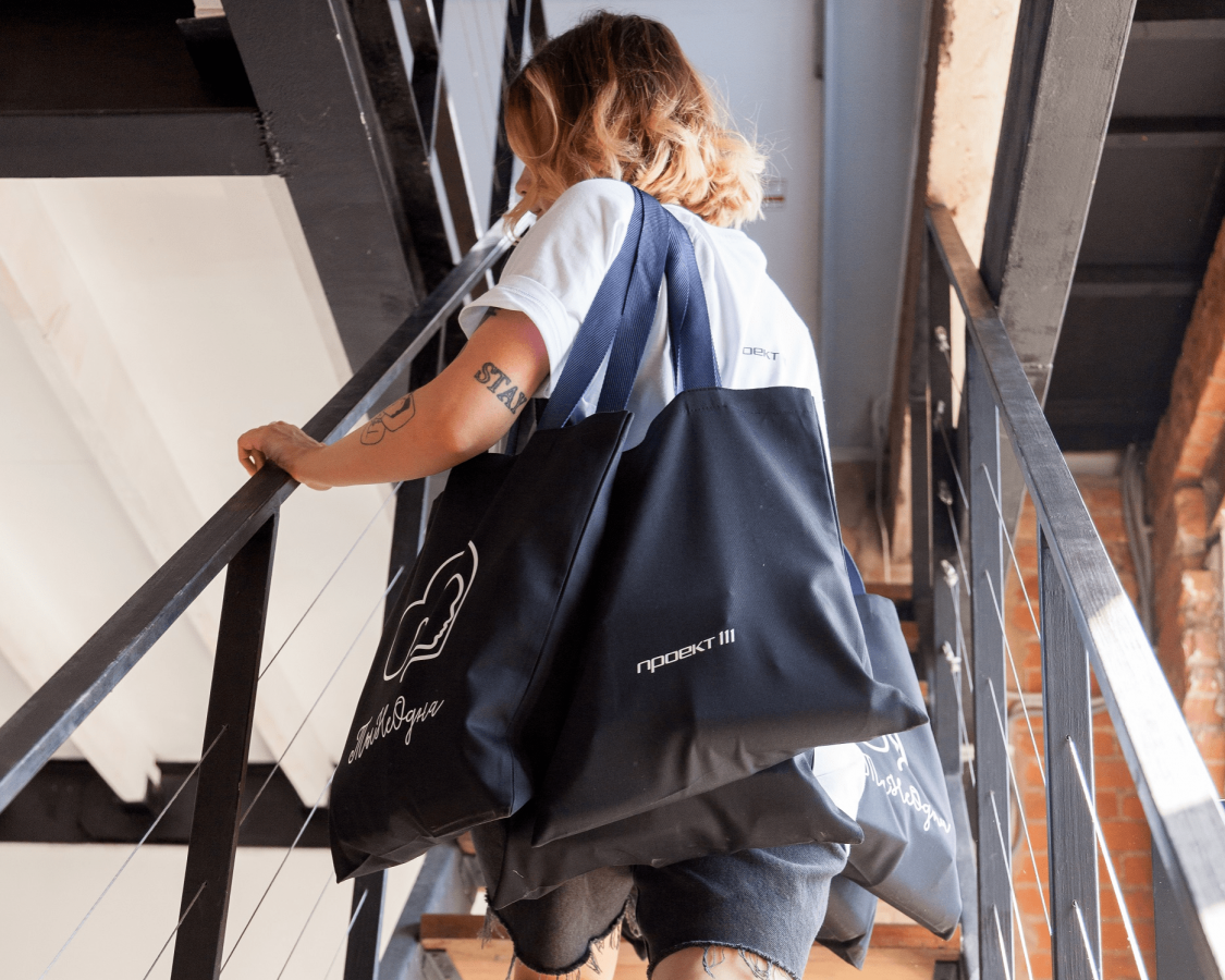 А еще сумки с принтом на улицах города, как мини-баннеры, напоминают окружающим о важных инициативах. В этом сила мерча — объединять людей и находить единомышленников.